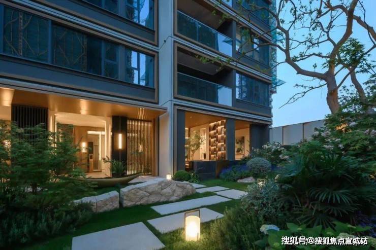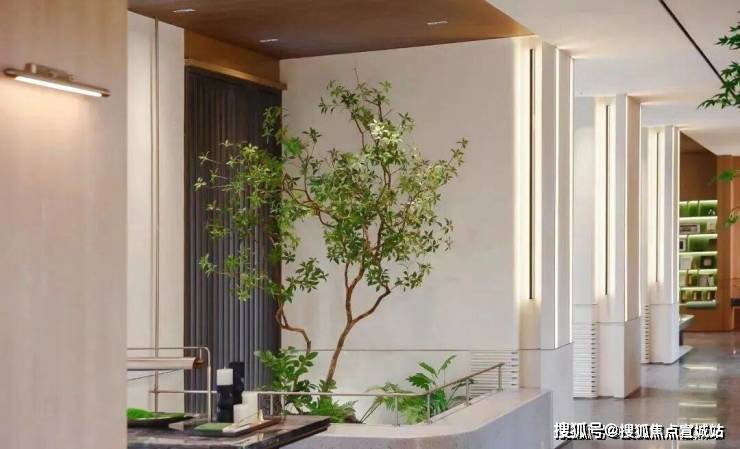 第一进:星级酒店的入户门头搭配入户水景,让入户更具仪式感、同时通过院内布景的遮挡,让小区内部景观增添一抹神秘感;