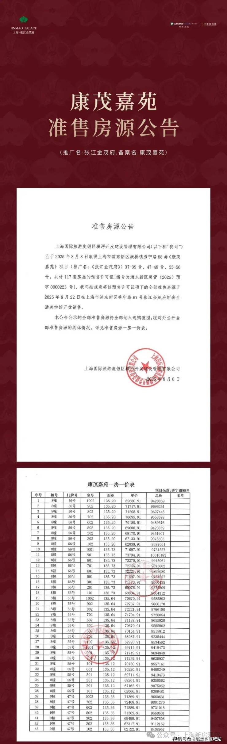 最新消息!浦东首座金茂府3.0「张江金茂府」加推117套建面约93-136㎡3-4房;均价68722元/㎡!认购金20万;认购时间:8月10日-8月14日!样板房线上火热预约中!