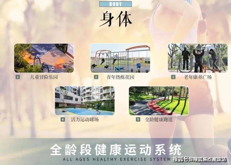 ①儿童冒险乐园②青年热练花园③老年康养广场④活力运动球场⑤全龄健康跑道