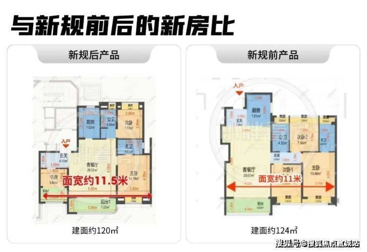 ✔对比新规前产品,120㎡段户型面宽普遍在11米上下,环宇玖章面宽优势一目了然;