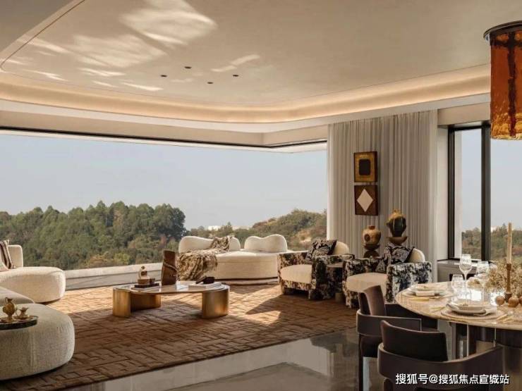 270°的落地窗赋予卧室流动式的景观,由静态的天然意境再次回归自然与家居同频共振的整体感.不只是视觉,清风、暖阳、山野湖景的轮廓借光现行,融进室内的空气中,乃至居住者的日常里.
