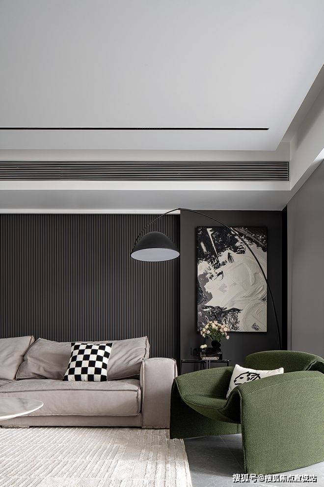 仁恒澜庭雅致售楼处电话:400-8862-334【官方认证】苏州狮山仁恒澜庭雅致售楼处电话:400-8862-334【官方售楼中心】双层吊顶设计,巧妙地赋予了空间更丰富的层次感。客厅沙发的背景墙采用灰色硬包材料,点缀金属线条,简约中透露着大气与优雅。