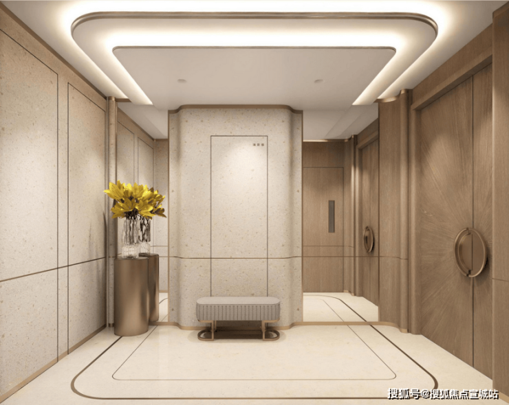 381户型标准层电梯厅效果图,仅供参考,最终交付标准请以合同约定为准