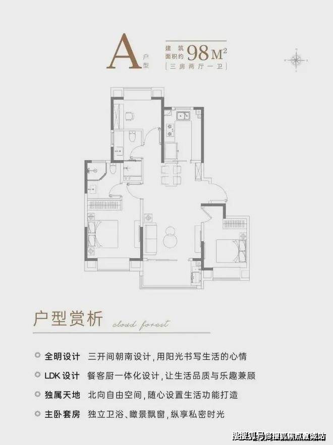 A户型建面约98㎡3房