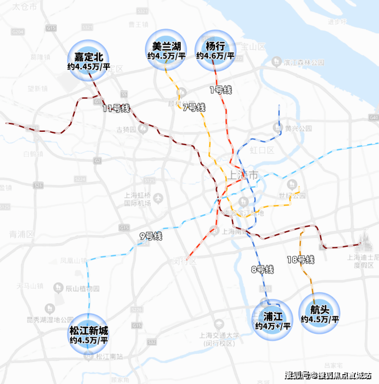 据最新统计,目前上海能通勤传统中央商务区的地铁线,远郊终点站的新房单价几乎全部超过4万,大多数在4.5万左右!