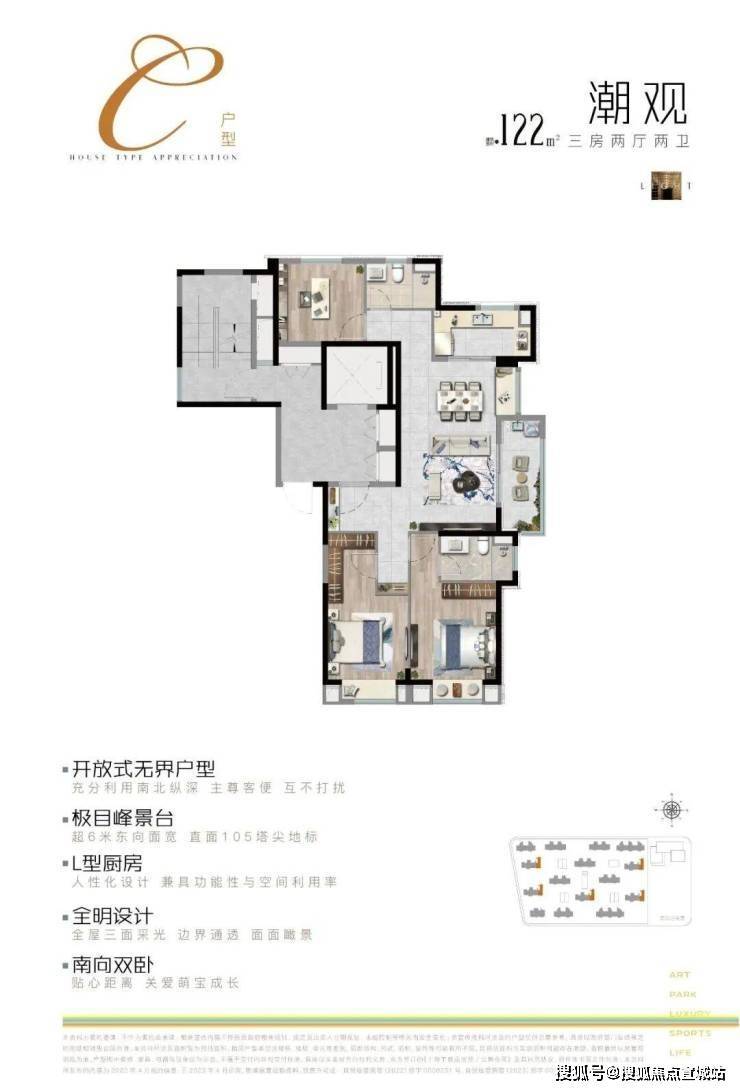 建面约122㎡ 三房两厅两卫(边套)——景观标杆,视野绝佳