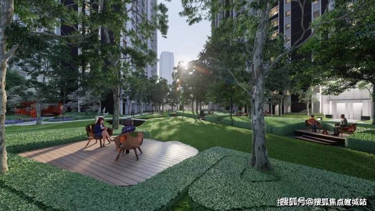 在活动大草坪上互动,其中有专属儿童乐园,景观中还保留了一些休闲平台和户外凉亭可供家长看护孩子,打造住宅花园城市中的平静绿洲,塑造与大自然的互动体验。