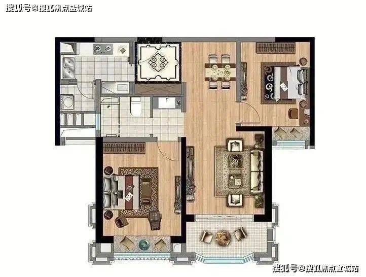 95m²2房2厅2卫户型