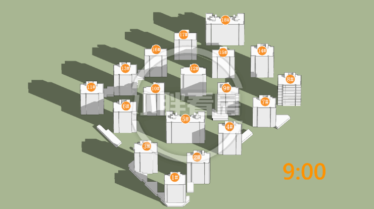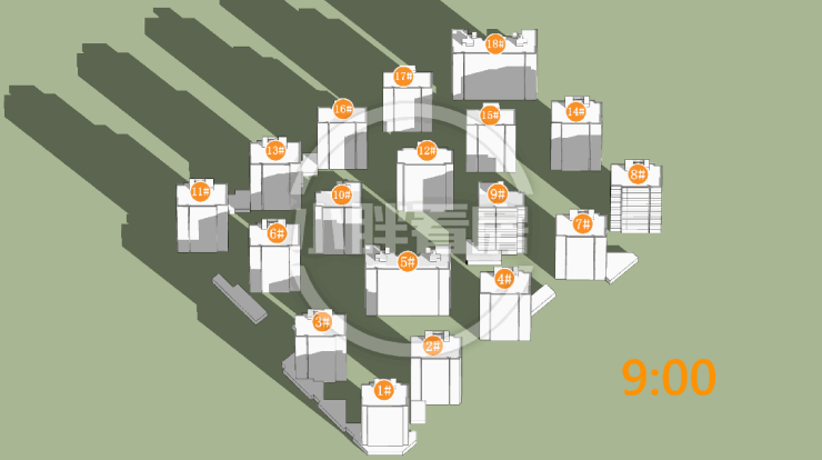 春分秋分(9-15时)在售楼栋日照时间和动图