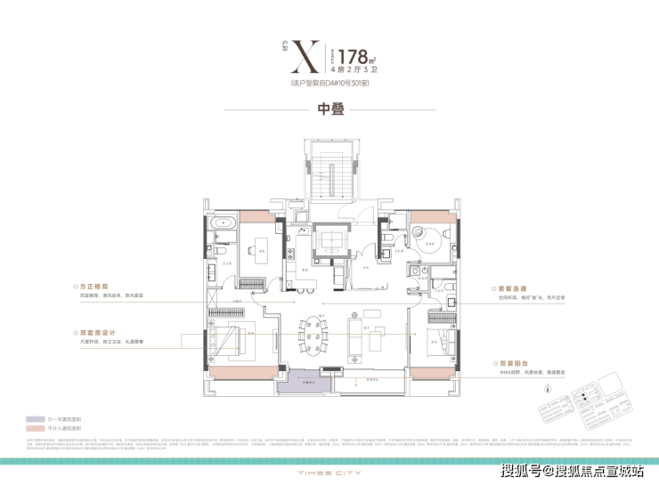 项目的中叠四开间朝南,超大IMAX的采光面,妥妥市区豪宅大平层的尺度感。
