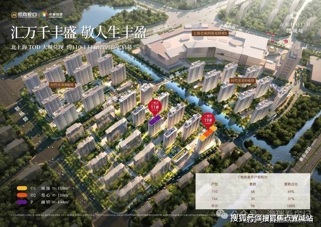 2024年7月9日,招商蛇口&中旅投资拿下宝山顾村7号线潘广路站旁地块。目前,项目定名为招商中旅·观境,主力户型为建面约110㎡3房和约144㎡4房。