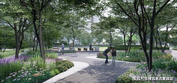 约1500㎡儿童花园、康养花园、森活运动场域、层林话吧四大主题花园,搭配家长看护区、休闲座椅、交流吧台、健身器材等,打造成舒适的全龄公共生活区,充分满足亲子互动、健康运动、休闲康养等需求。