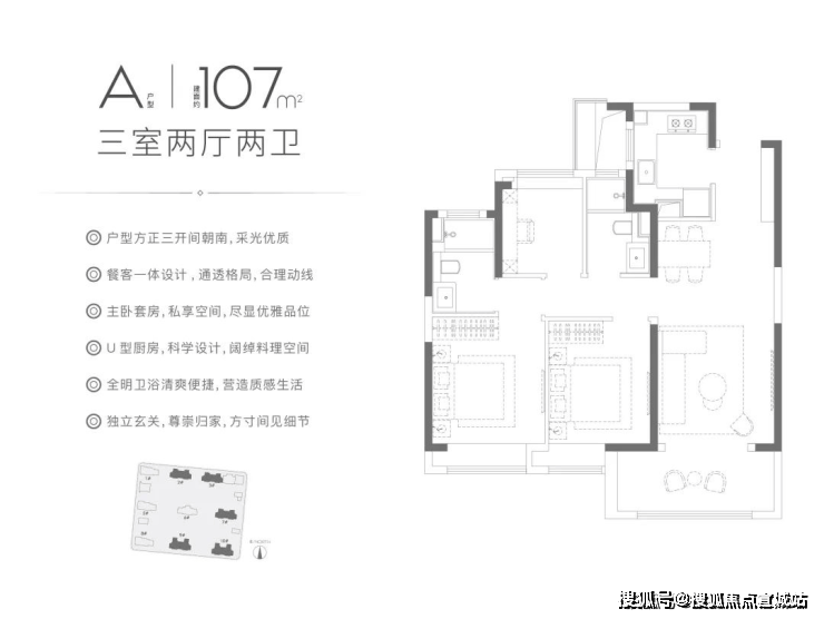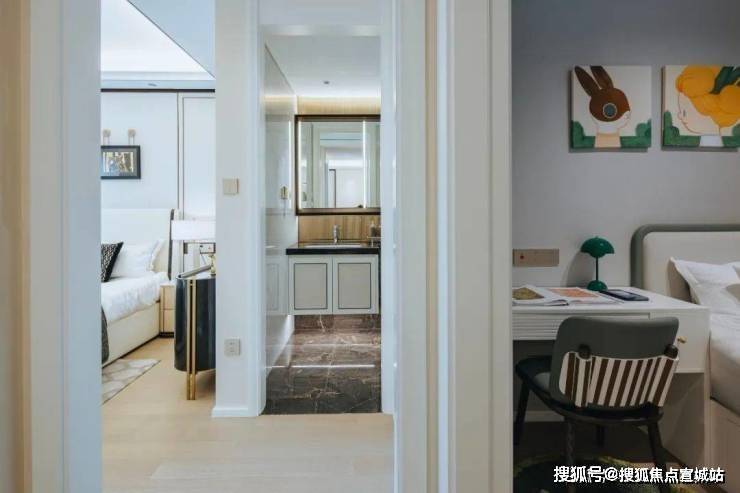 主次卧+客厅三开间朝南,餐客厅一体化设计,主卧套房设计,卫浴、衣柜、卧室层层递进,既有空间的尺度感,又有生活的舒适性,卫浴还是全明设置,极大提高生活的舒适度。