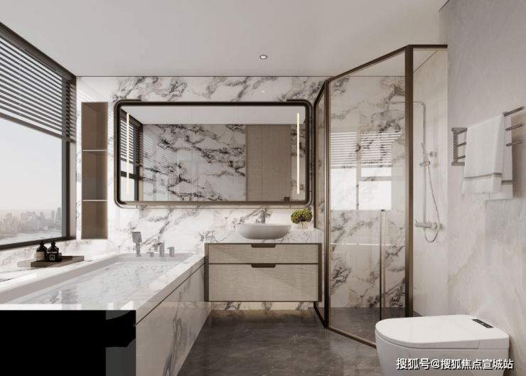 同时,南北两个房间以及主卫均为270°转角飘窗(1-2层除外),主卧套间约21㎡,3.9米的超大面宽,功能齐全——独立4件套卫浴、化妆台、步入衣帽间,尊崇感与舒适度拉满。
