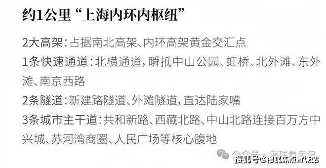 轨交轨道交通1号线(中山北站)距离本项目直线距离100米!一站上海火车站,四站人民广场,五站新天地!且四站内可换成2、3、4、8、12、13号线几乎可达上海各处!自驾:自驾3公里可达人民广场