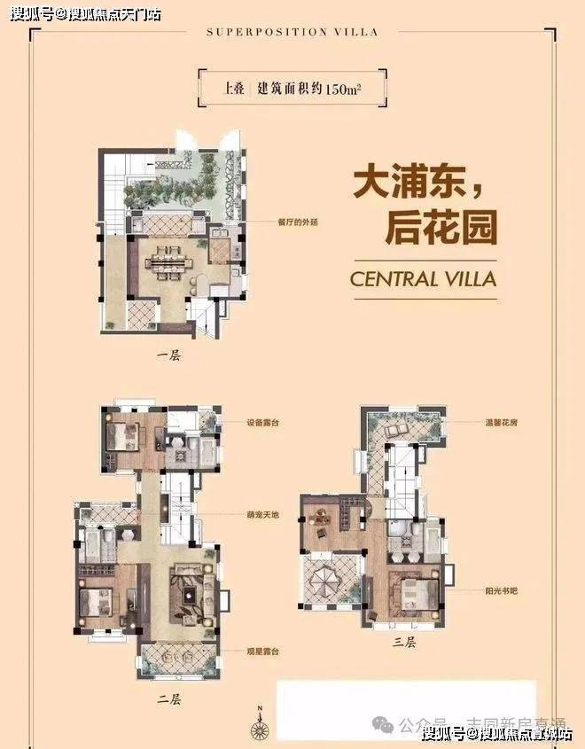 上叠户型是建筑面积150平米的三层,4房2厅中西双厨的全套房设计,特设独立花园入户通道,保障业主私密性。