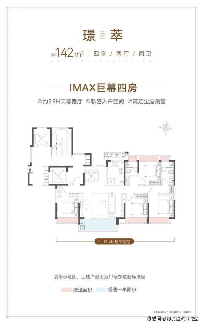 四点五个面宽朝南+约5.9m的宽厅设计,南向面宽达到惊人的15.4m,大宽厅还可以打造灵动空间,老人、小孩在客厅玩游戏、练瑜伽等,营造出更多丰富的生活场景。