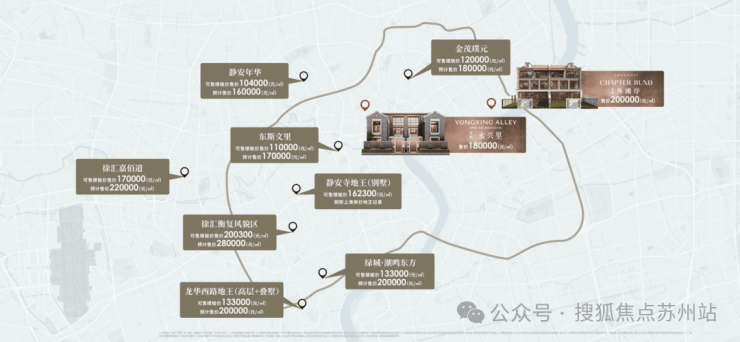 纵观保利永兴里周边新房,弘安里别墅(总价约6000万-2.5亿)、中兴傲舍大平层(总价4000万+)、静安里别墅(总价5000万-1亿)。当上海内环高层业态起跑线站上16w,保利·永兴里双拼别墅相当能打,同样地段价格,没这业态,同样业态地段,没这价格,同样价格业态,没这地段。对于既要还要的置业者来说,保利·永兴里内环静安+双拼别墅+3000万起总价可谓集齐全部爆款参数。