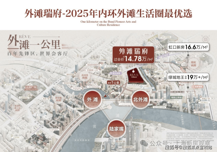 外滩瑞府,地处上海内环最“根正苗红” 的位置 —— 外滩1 公里生活圈。如果说内环是上海豪宅的 “第一梯队”,那外滩板块就是 “内环中的内环”。