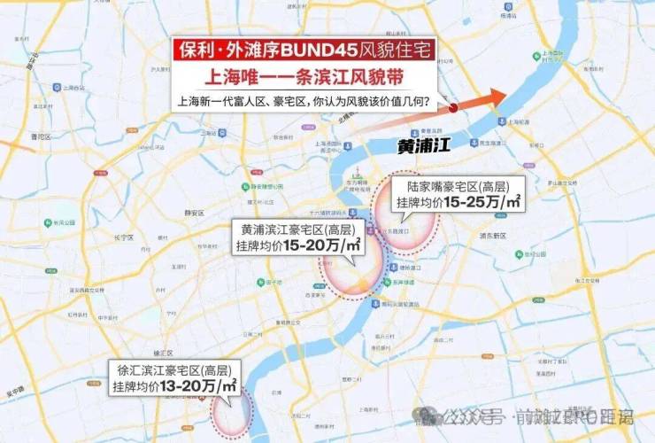 另一方面,滨江豪宅房价容易走出独立行情,黄浦滨江、陆家嘴、徐汇滨江等知名豪宅区都在滨江两岸,但它们都是高层,目前普遍挂牌15-20万/㎡。
