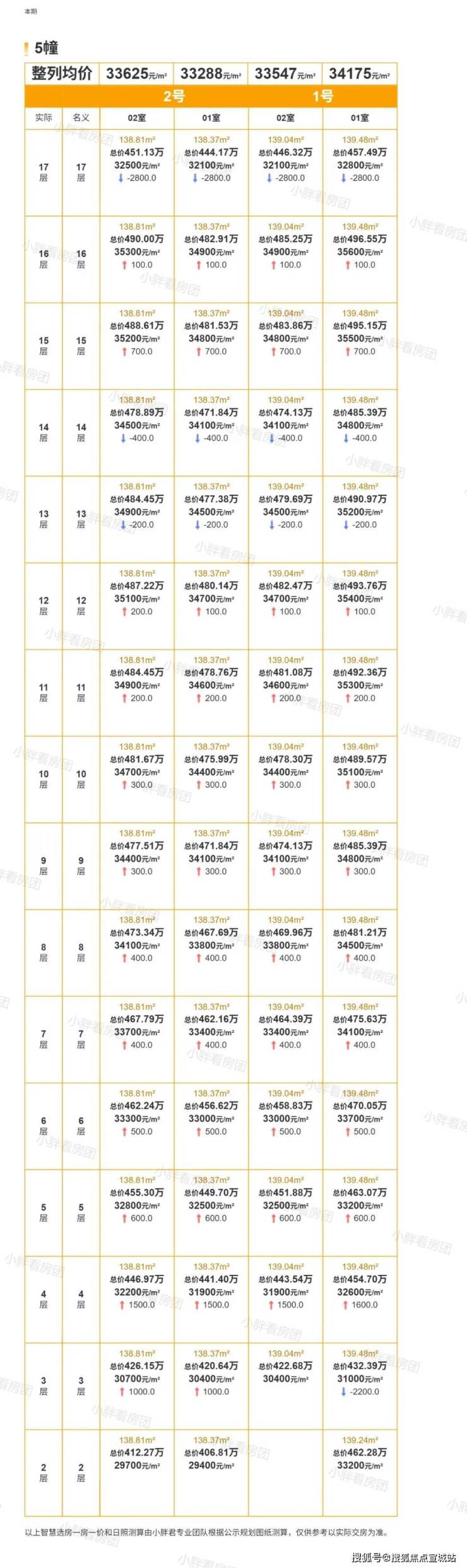 5# ,共63套房源,面积约139方,均价3.3661/平。