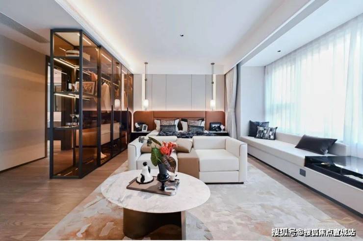 169㎡四室两厅三卫:位于6#楼,3.1米层高搭配全景飘窗,主卫采用双台盆设计,空间尺度堪比五星级酒店