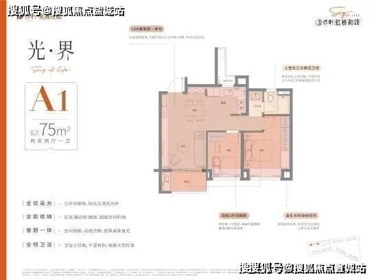 户型设计上,虹桥和颂售楼处电话☎:400-882-8814(预约热线)✔✔✔保利虹桥和颂,品质改善为出发点,设计“私属、至臻、尊崇”三大产品理念,臻奢建面约75㎡户型,三开间朝南,阳光与清风为伴,玄关+餐边柜+飘窗,全能收纳,卫浴三分离,干湿有别,奢阔餐客厅一体,空间明朗,动线流畅。