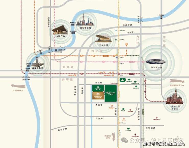 并且,康桥凭借区域内的中环线、S20、11号线、18号线等道路交通设施,把康桥和陆家嘴、北外滩、前滩、张江科学城等城市重大CBD连成一条黄金轴线.