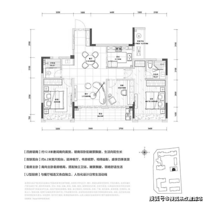 【C】:南朝向,4室2厅2卫,建筑面积128㎡,260万/套。