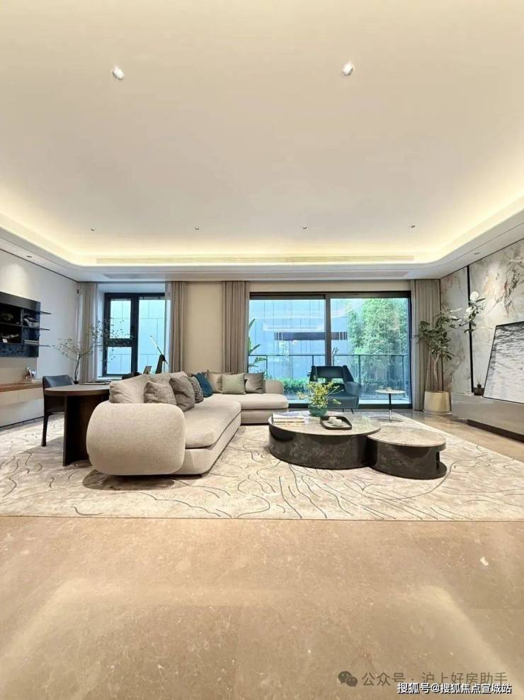 室内设计,秉承摩登东方的理念,设计以人、生活为中心,从空间本体和情感层面都回归生活,270度环幕采光,开放式会客厅设计,兼具尺度感与功能性。