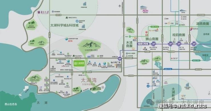 项目周边有不可复制的环境资源,苏州有两个国家级度假区,一个是阳澄湖国家旅游度假区,另一个就是我们太湖国家旅游度假区,太湖湾区,北靠穹窿山(5A级风景区),南临太湖,整体环境宜居,生态宜人;