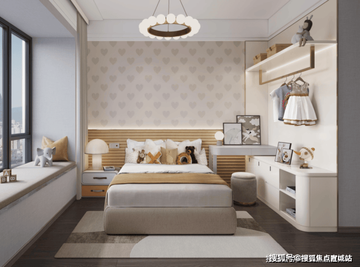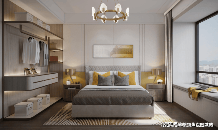 双南向卧室皆带飘窗,主卧大套房设计,带独立卫生间和衣帽间,让两代人都可以拥有专属的空间;