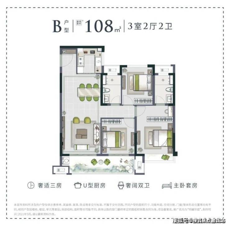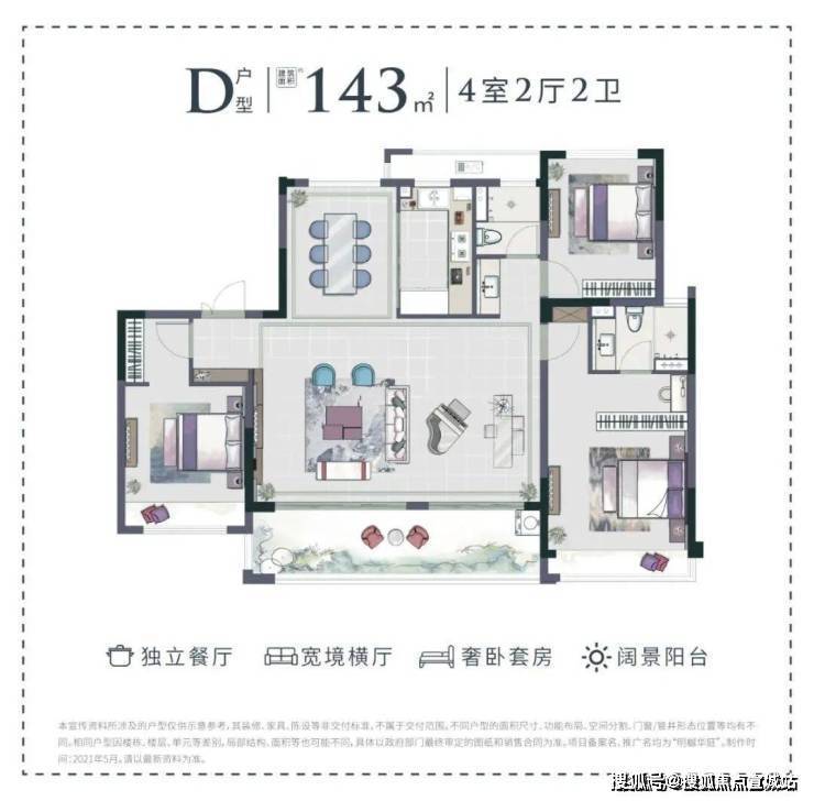 采光、通风与私密性俱佳,双开间宽境阳台,尺度大气阔绰。