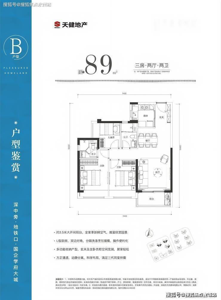 B户型:3室2厅2卫,约89㎡