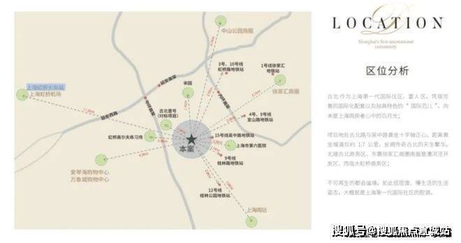 距离虹桥交通枢纽6.5公里左右,出差便利。产业、交通、配套齐聚,且周边就是古北壹号、古北臻园,圈层纯粹!