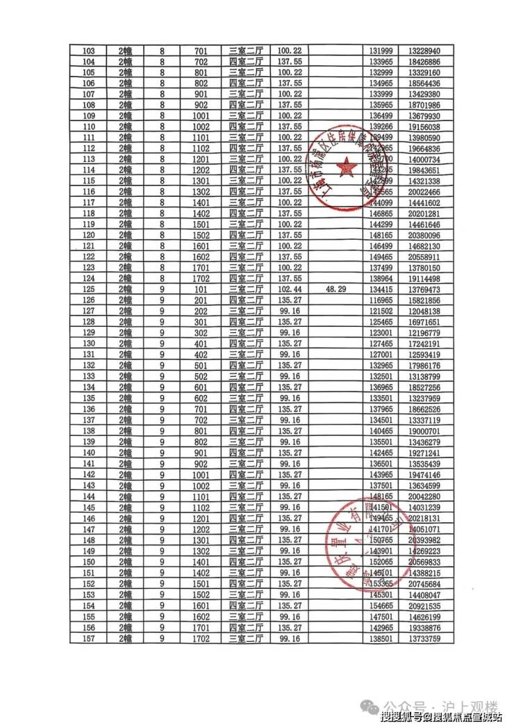 完整一房一价表如下: