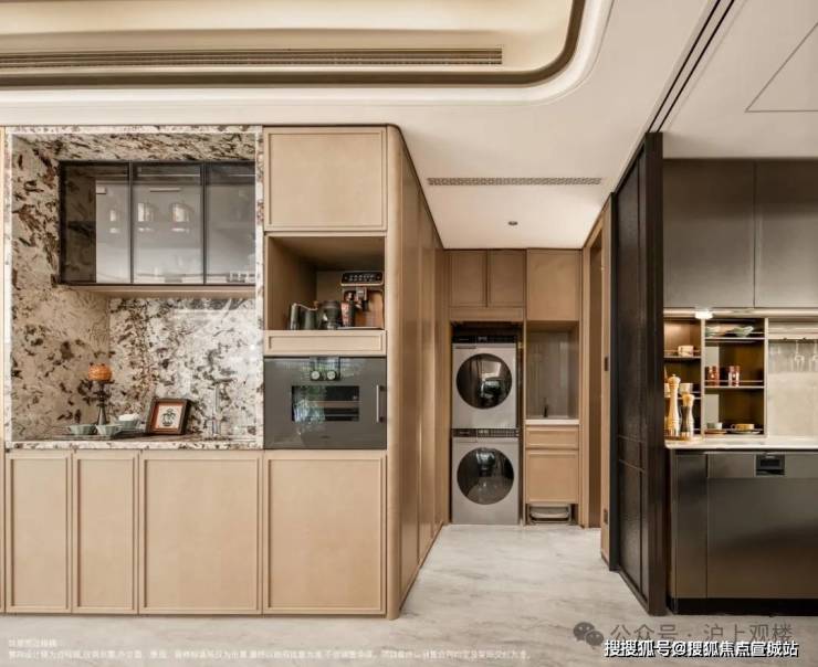 还交付一体化餐边柜,收纳能力惊人;同时 该户型还配备专属家政空间,邻卫生间, 动线更流畅,彻底解放阳台,阳台不用晾晒,完全用于观景或志趣空间。