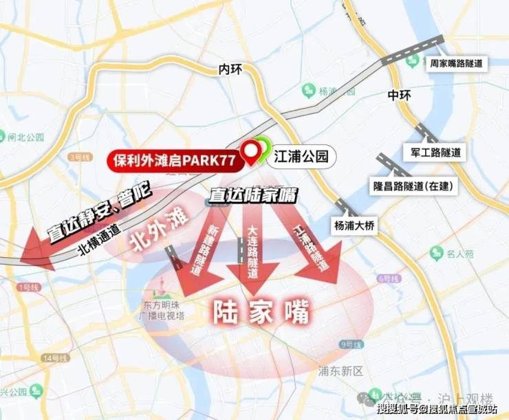 杨浦内环12/18号线江浦公园站双轨上盖, 保利外滩启PARK77正在火热认购中,均价约13.55万/㎡,仅157套建面约99-137㎡3-4房!