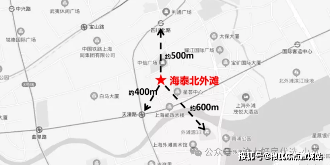 海泰北外滩位于虹口四川北路天潼路附近,距离外滩源仅600米。