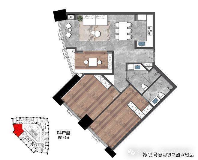 149㎡,西南朝向,3房(2+1)灵动布局,功能多变