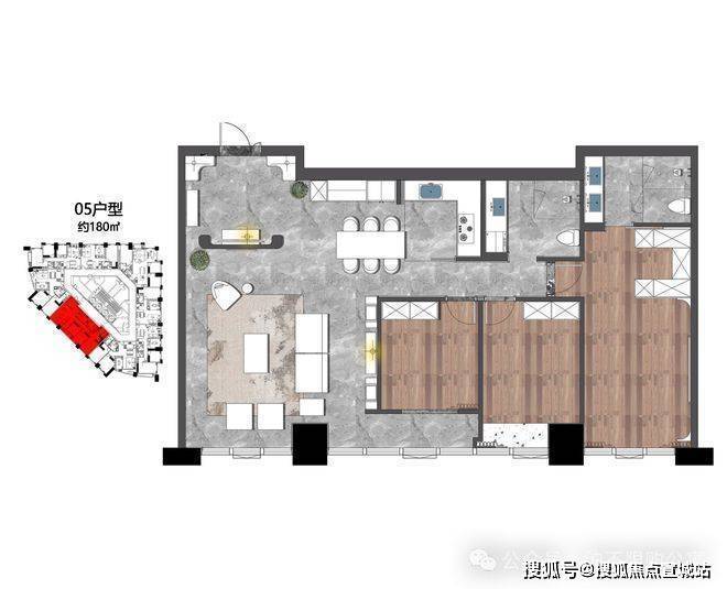 177㎡,东北朝向,4房(3+1)全能户型,边套+超大阳台+极致采光