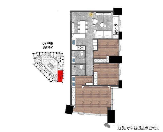 132㎡,西北、东南朝向,3房性价比之王,边套设计户型方正主卧双面大落地270度全景采光