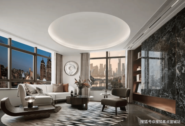 所在楼层,高耸入云。躺在床上即可饱览上海“一江一河”的经典地标,睁开眼睛即可感受到内环老城厢的闹忙、烟火气……在家就能看陆家嘴三件套的日出日落、苏河湾上工作游船的来往如织。