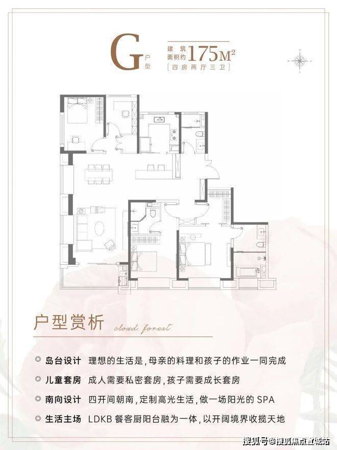 户型特色:90㎡两房采用双南布局 + LDK 一体化设计,玄关预留鞋柜插座,厨房有防水沿设计;98㎡三房全三开间朝南 + 双卫设计,儿童房预留书桌位;175㎡四房四房全明 + 动静分区,老人房带独立卫浴,露台全赠送。