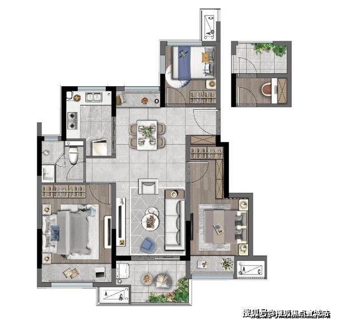 颠覆性品质爆款三房,充分考虑空间利用,巧妙打造,整个空间没有浪费一丝面积.每一个房间都物尽其用,让阳光铺满每一寸生活区.