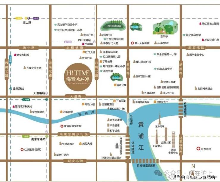 交通配套:项目紧临市中心三纵三横交通主干道之一的北横通道虹口段,周边有新建路隧道、延安东路隧道等四条越江隧道,以及地铁 10 号线四川北路站、10 号线和 12 号线天潼路站、3 号线和 4 号线宝山路站等四条地铁线路。