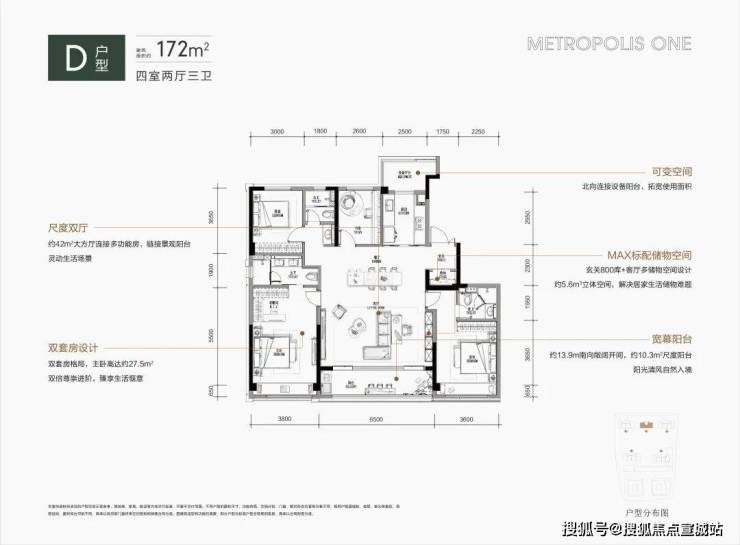 ①约42㎡尺度双厅,约13.9米南向敞阔开间