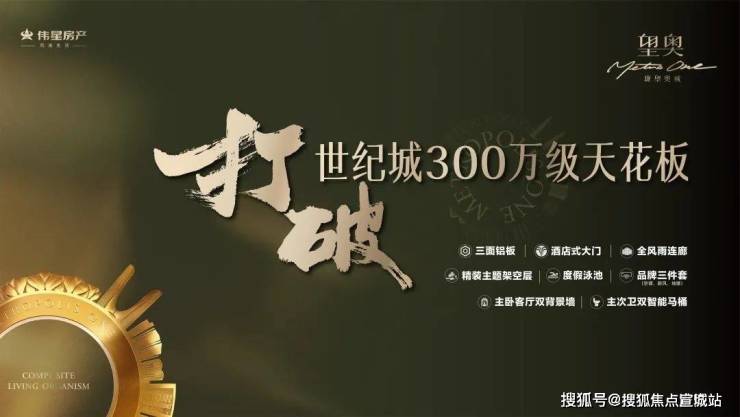 伟星·望奥 打破 世纪城300万级天花板三面铝板立面 全风雨连廊 四大主题全景化架空层 度假泳池 高配精装 奥体封面生活圈 都会复合单元体