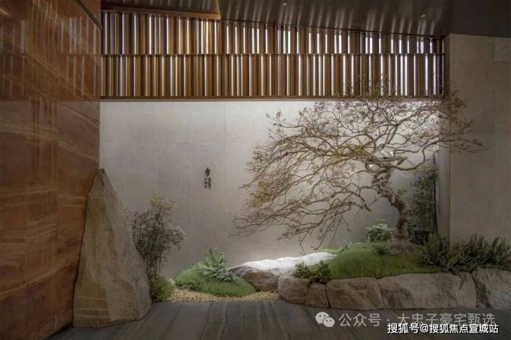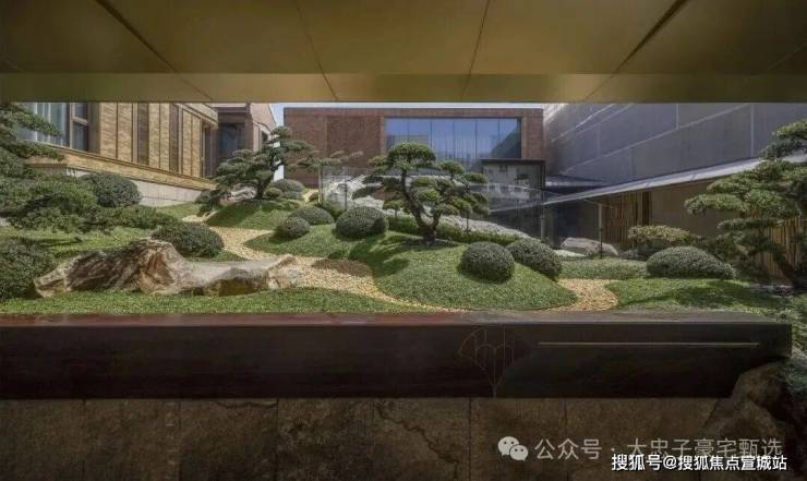 为了使我们在稀缺的地段营造稀缺的资源,把生活的想象现实化,越秀·外滩樾还在会所引“山水入园”。在空间有限的情况下,进行垂直空间的挖掘,营造了坡道景观、山水庭院和会所。