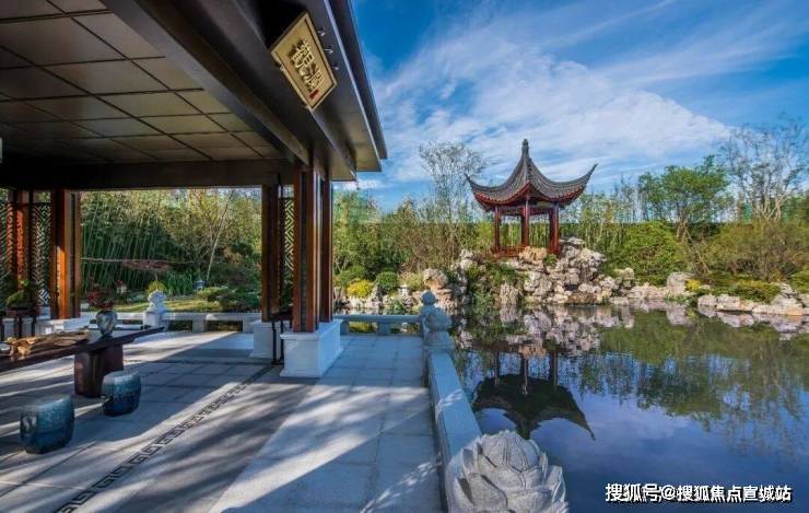 约3500㎡的中央景观区,融汇山池、六角亭、戏台、石舫,实现一步异景的院落诗意居境。